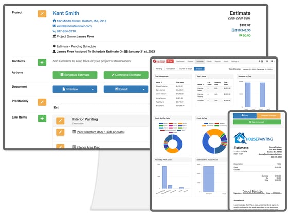 Estimate Rocket is specifically designed for service professionals who strive to gain control of their company and cordinate better to grow their businesses to new heights. Manage customers and their jobs from the sales process, through the work stage, and all the way to invoicing and more.